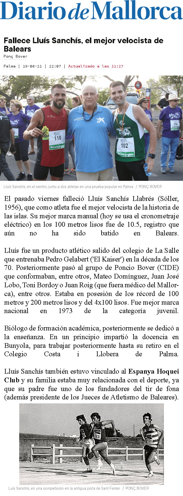 El viernes falleció nuestro querido amigo Lluis Sanchis, junto a su padre formaron parte del EHC durante muchos años, Lluis Sanchís fue preparador físico del primer equipo durante varias temporadas en la etapa de hockey clásico dejando una gran huella en todos los que le conocieron y tuvieron la suerte de disfrutar de su paso por este gran Club.